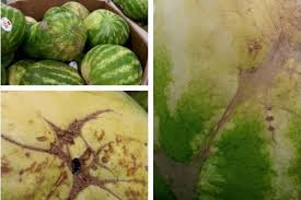 As cicatrizes marrons na superfície da melancia são nada, mas os rastros deixados pelos insetos que tentaram extrair o açúcar a partir da polpa de fruta. Lembre-se que os animais são os melhores conhecedores em matéria de frutas e legumes, assim que a quantidade dessas fissuras é um grande sinal!